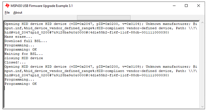 6) 如图所示,如果未检测到设备(MSP430),则重置 MCU 并重新扫描 HID 总线: